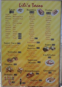 Lili’s is yet another Mexican establishment that does not take credit or debit cards, so make sure you have cash on hand if you decide to try them. However, the menu is fairly diverse (fajitas?) and the prices some of the better ones I’ve seen.