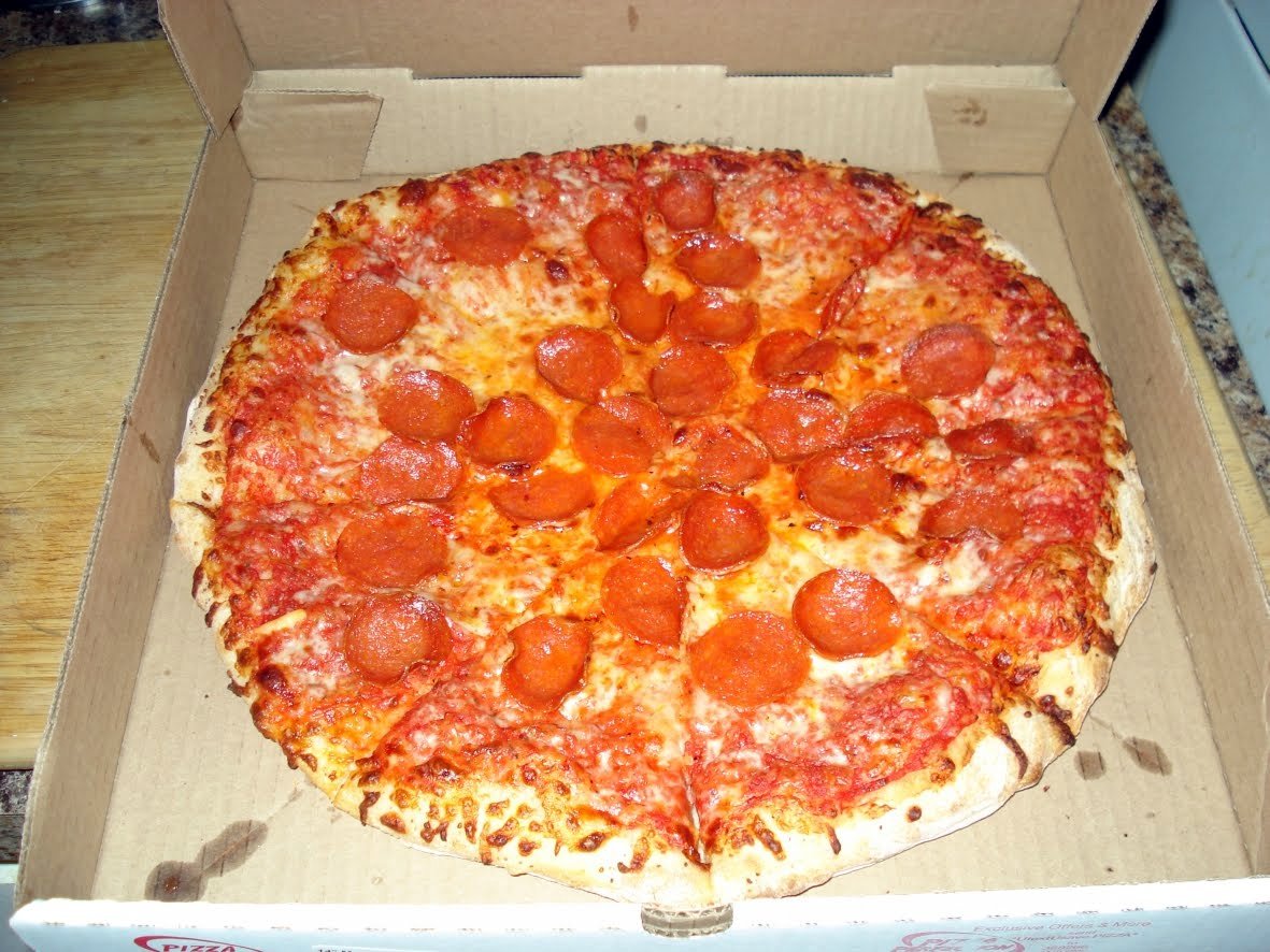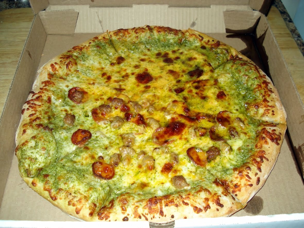 In my circle, we have a lot of disparity over pizza sauces.  I personally don’t dig creamy or white sauces, but that’s my Mom’s favorite by far.  My sister’s boyfriend is pretty fond of it too, whereas my sister herself is happiest with the old-fashioned red sauce.  In my experience when there’s a war over white or red sauce, I find pesto to be the great equalizer, and Pizza Perfection has one of the best pesto pizzas I’ve come across.  On this occasion, it was just myself, my girlfriend and the kids, so we kept it nice and simple: pepperoni for the wee ones and pesto with cheddar cheese for the grown-ups.  The cheese-only side is hers, the meaty side mine.  Interesting note here: when I called, I ordered a pizza with pesto sauce, cheddar cheese and liguica sausage on half.  What I got was liguica and (Italian) sausage.  Oh well, the more pork the merrier, yes?  “But Track,” you might say…or might not, doesn’t matter, “where are the vegetables?”  This is another area where Pizza Perfection really stands out…