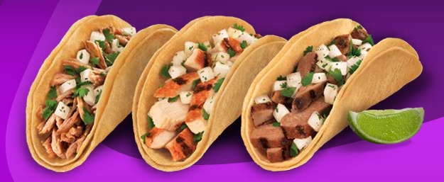 | Chicken, steak and pork carnitas “cantina tacos” from Taco Bell |
