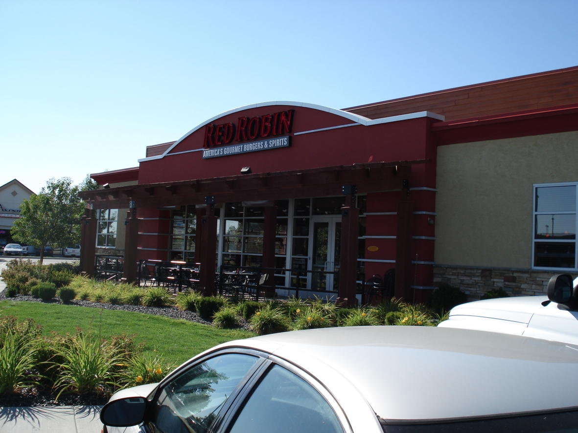 Red Robin is one of those places…well, suffice it to say you know you’re in a chain restaurant the second you walk in the door (one of the children put it best when she said “I went to one of these restaurants before, but I thought it was called Applebee’s“). There’s a lot of pointless decor that has little to do with the food you’ll be ingesting, and the restaurant’s logo is everywhere.