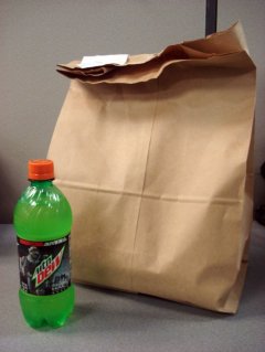 | Not the most graceful of take-out packaging, but certainly effective! |