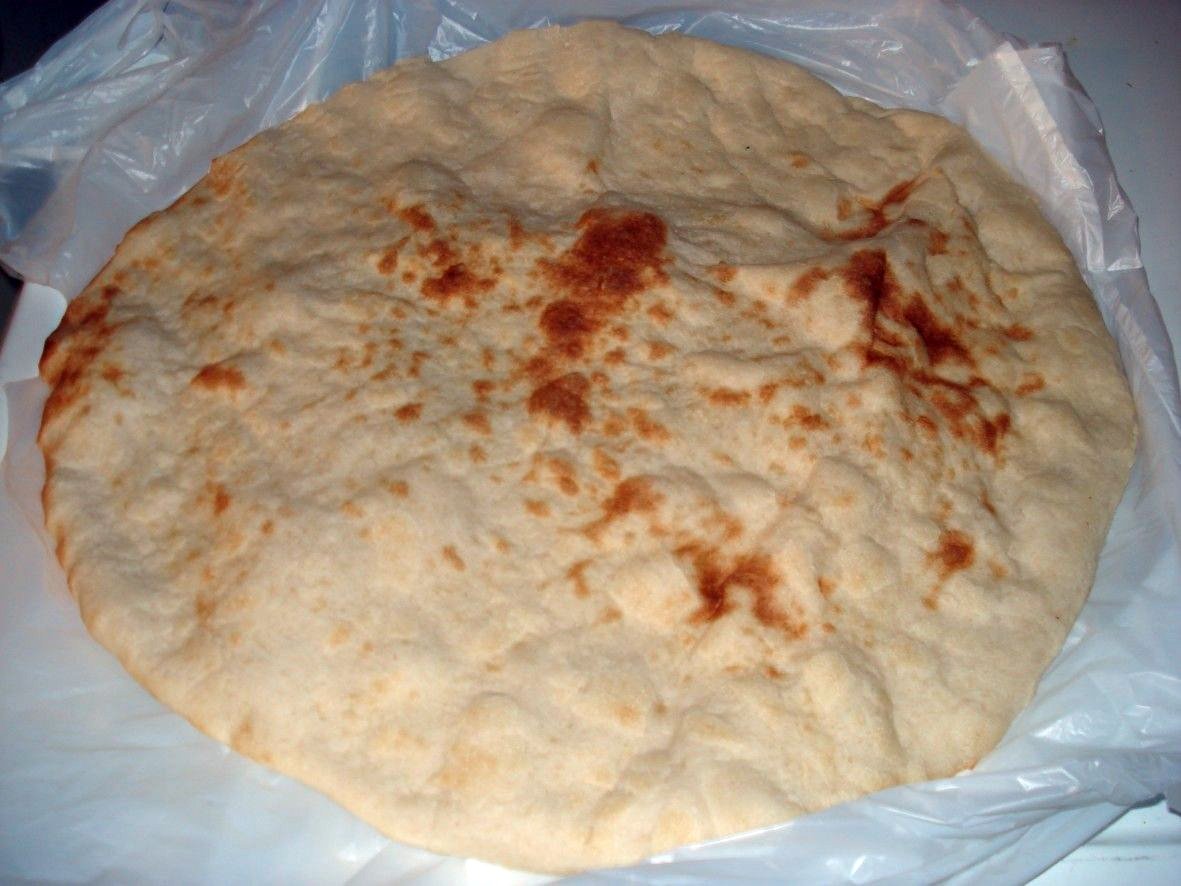 Miss Golden Rule and I tore into the flatbread straight away. I had been a little concerned that I had nothing to dip it in or to spread on it, but it didn’t matter because nothing more was needed. I cursed myself for waiting until I got home to eat it just so I good get a picture of it intact for the blog, because if it was this good now, when it was hot it must have been the kind of good that makes your eyes roll back in your head uncontrollably. I will definitely be making special trips for this bread in the future.