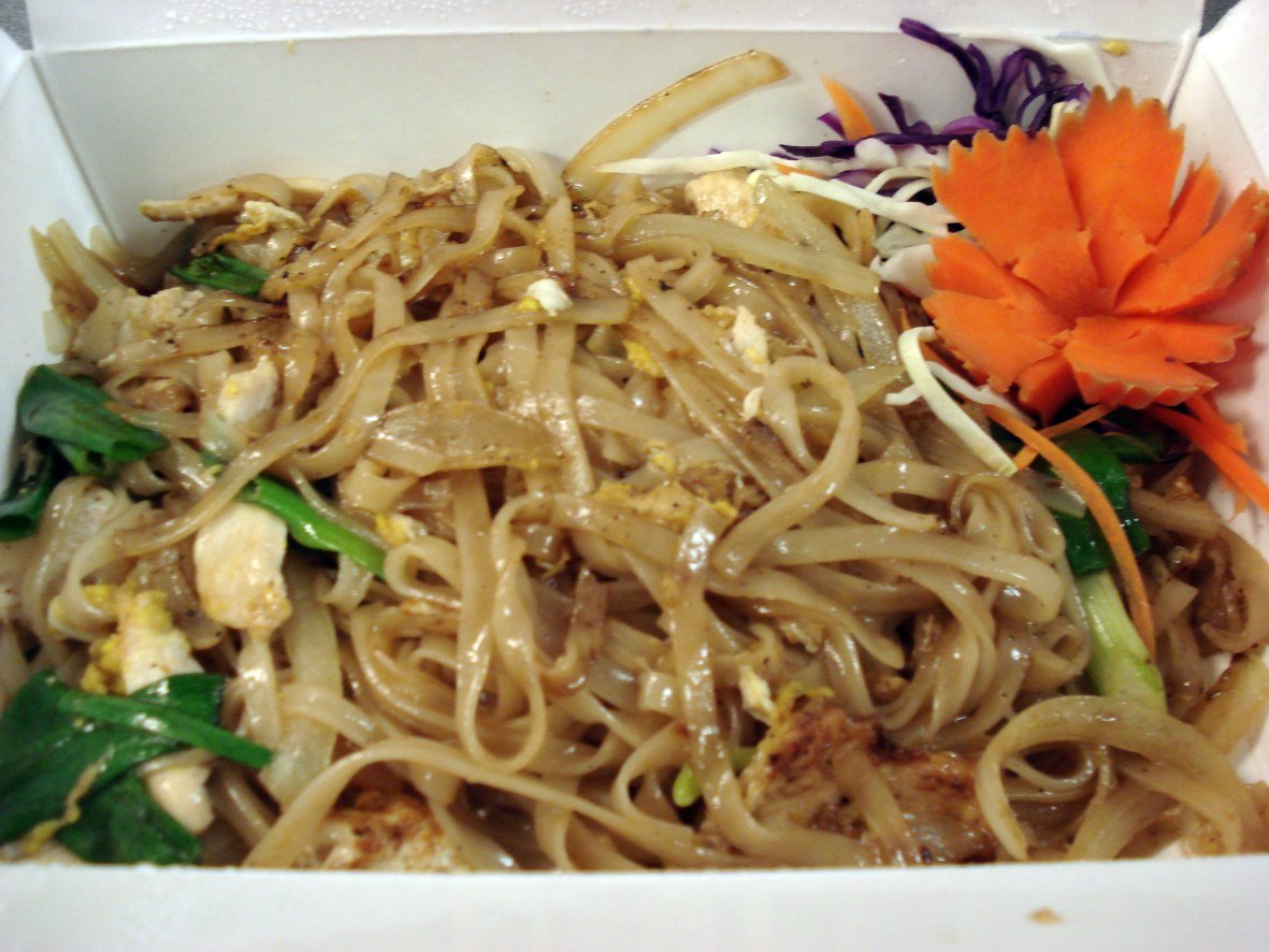 While still shoving forkfuls of this stuff into my face, I was using my other hand to search for information about Pad Gai on the internet.  Interestingly enough, one of the most common things I found is that it’s something of a rare dish, even in large cities.  Pulling up online menus for as many local Thai places as I could find, I soon learned that it’s a rare dish here as well.  In fact, I was unable to find a single other eatery that makes it.  So, A Taste of Thai will apparently be getting more of my business from now on.  Stop by and try the Pad Gai if you’re at all interested, and while you’re at it ask if you can have it as a lunch special.  Who knows, perhaps if enough people ask…