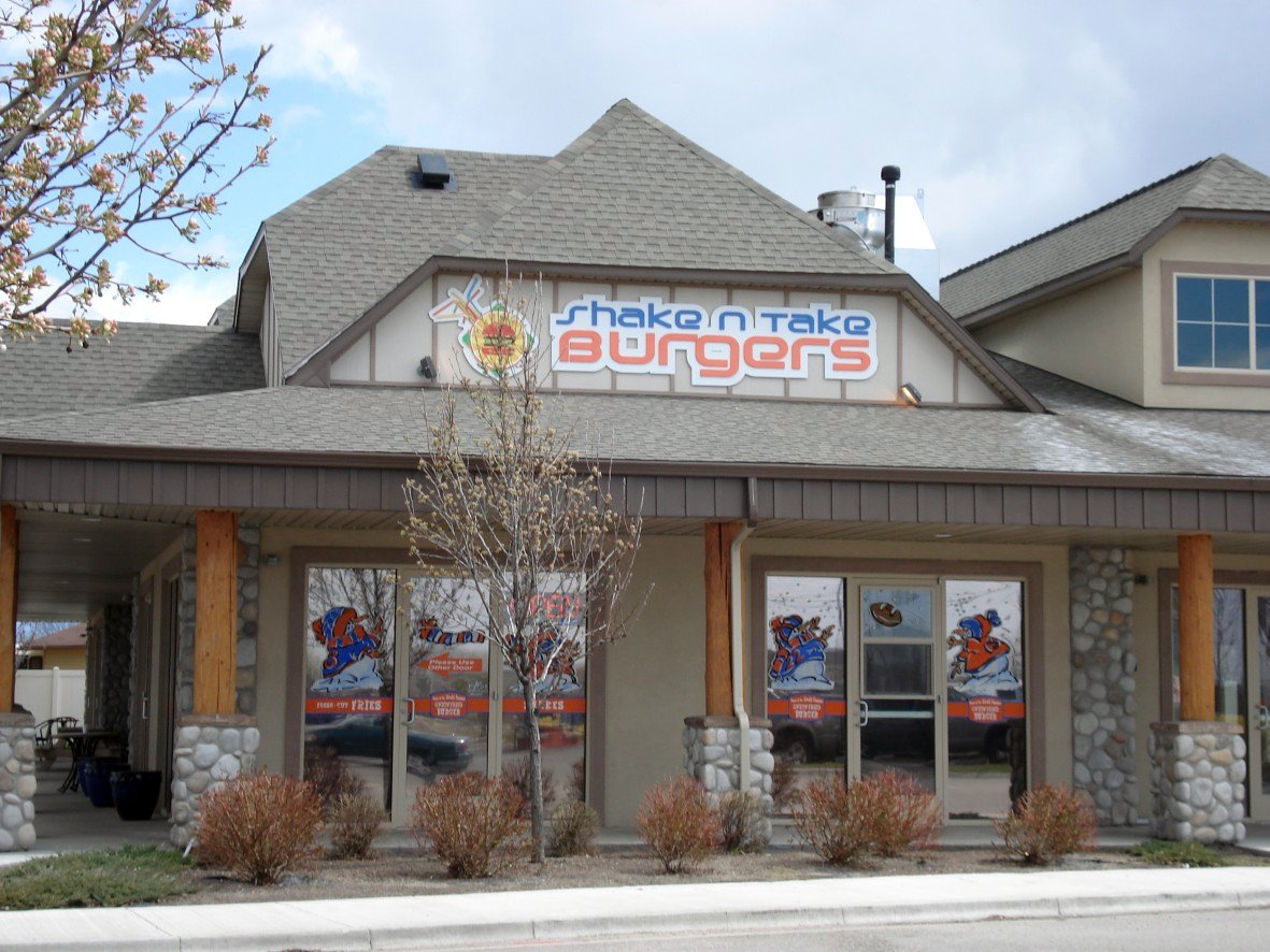 Shake ‘n Take has been open for some time now, and I can only assume they have a pretty loyal customer base since they certainly aren’t in a high traffic area. They’re located in a strip mall on Ustick Road, between Meridian and Linder Roads. Just keep your eyes out for a kinda fancy-looking Chevron station on the north side of the road, and the strip mall is across from it. You’ll know you’re in the right place when you see a bunch of window paintings in BSU colors and a monster truck.