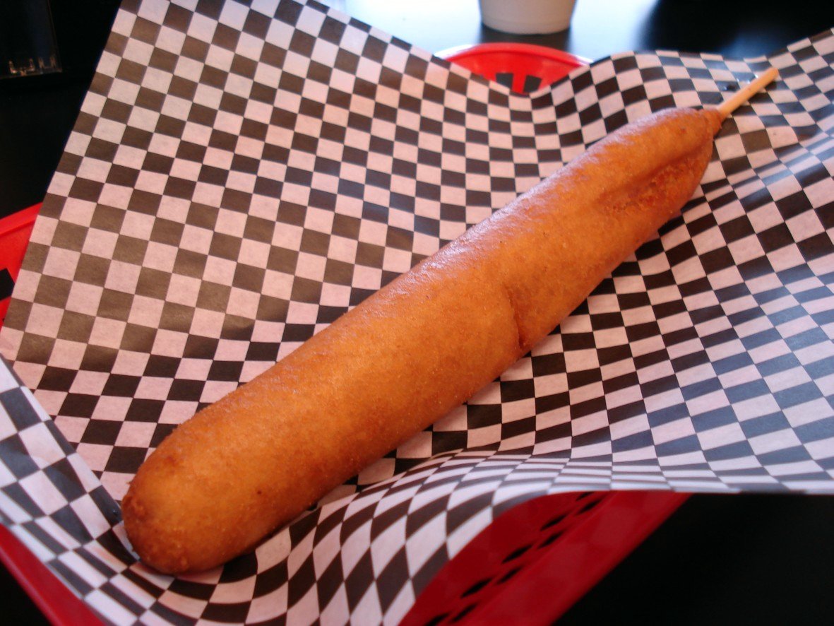 The corn dog was great. Not just because it was bigger than the toddler’s head and she needed both hands to heft it, but because I actually tried a bite of it myself and it’s actually pretty good! Horrifyingly enough, she finished all but two or three bites of it. I have time lapse photos of this, but her mother will kill me if I post pictures of her face on here, so you’ll have to just imagine it.