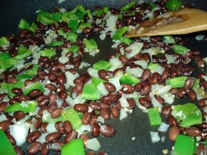 Next, dump in the black beans and cook for another three minutes. You don’t have to babysit it, but keep it moving in-between sips of beer.