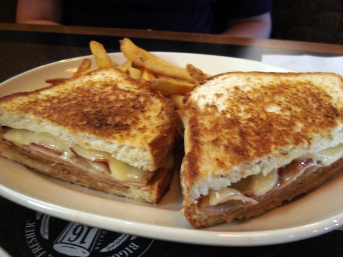My roommate, knowing that I would soon be lost in my cheeseburger, quickly insisted that I try her sandwich. The most important thing I can tell you is that the name of the sandwich doesn’t do it justice, since it doesn’t highlight the smoked bacon or garlic mayo. A very, VERY good sandwich, and a reminder that I need more havarti cheese in my life. I really dug the fact that they grilled the turkey on its own rather than just throwing it in the sandwich and grilling the bread. If you like turkey sandwiches, this one is definitely worthwhile.