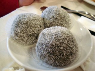 This was one of the two things we ordered exclusively for my gun-shy niece (the other being steamed chicken buns). These things had a texture something like bread dough, but more so like a giant gum drop. The outside was coated with coconut, the inside full of chopped peanuts. Odd but tasty, I must admit.