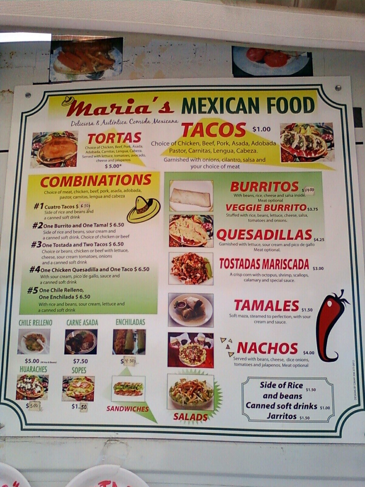 Maria’s is a little different inasmuch that you can expect to wait a little while. I was late getting back to work, but I figure that probably means my food was cooked to order, and that can’t be a bad thing. I gave my sister her nachos without trying them myself (and when I remembered later, I certainly wasn’t going to try them then because of the germ farm factor). She said they were good (for as little as she was able to taste at the time) and that she’d had to remove some of the jalapeños, which I think may have been a first for her.