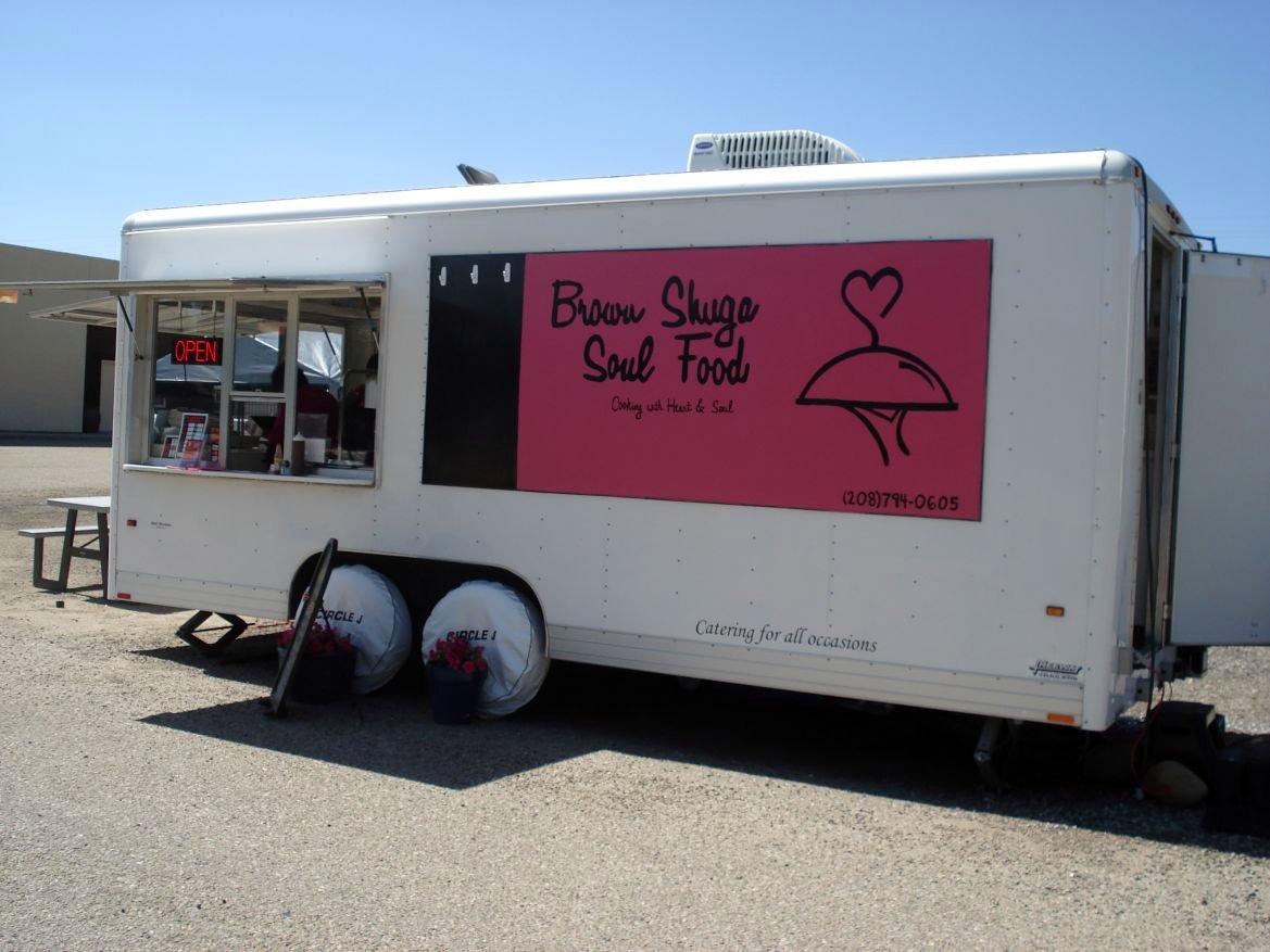 In the Spring, a young man’s fancy lightly turns to thoughts of love. That’s what Tennyson said anyway. To be frank, I don’t have the best track record with love, and I’m not so sure I qualify as a young man any longer. It doesn’t really matter I guess, since we didn’t really HAVE a Spring this year. Regardless, it’s Summer now, and this not-so-young man’s fancy has turned to thoughts of barbecue. Pulled pork to be specific. Right now there’s no shortage of pulled pork to be found, even from street vendors. On our way to the most recent Boise Urban Market, the roommate and I passed a little shack on Chinden called Brown Shuga Soul Food. These places always seem to jump into my path when I’m already on my way to eat somewhere else, but I made note of this one and knew I would return before too long…