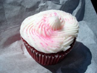 As I stood there waiting, a sign hidden behind some condiment bottles and which advertised desserts caught my eye. The options were Sweet Potato Pie and Red Velvet Cupcakes. If I recall, the cupcakes were $2.25, and since they were just the normal-sized variety rather than the monstrosities you can find at specialty bakeries, that might seem a little high, but there is no cake I like better than Red Velvet and I knew I had to have one. After collecting a large and heavy foil to-go dish and the aforementioned cupcake, I got into my car to head back to work. Before I could leave, however, I decided I had to eat the cupcake. I mean it was really hot out, and the icing could have melted! And yes I have A/C in my car, but I still didn’t want to risk it, and for the first time in my entire life I ate dessert first. Everything about it screamed homemade, and it put the boxed cake mixes and tubs of frosting at the grocery store to shame. It was moist, crumbly, chocolaty but not overwhelmingly sweet…in a word, perfect. I still have yet to make a Red Velvet cake from scratch, but when I finally do I’ll be happy if it turns out anywhere near this well.