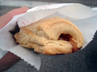 As I ate the aforementioned Pad Thai, I chatted with Gina’s husband, Robert.  He had his family recipe English Sausage Rolls on offer, but they weren’t moving very well.  I guess people weren’t wanting a hot, dense, meat-filled pastry.  I felt bad for the guy, and since I’d never tried one of the rolls, I bought one.  Heavy, flaky, salty, meaty goodness.  My only complaint is that I feel it should be a criminal offense to sell these without beer, because they almost demand it.  Not necessarily my snack of choice when the temperature is in the 90’s, but if they offer these again once Fall rolls around then I’ll definitely be in line for them.