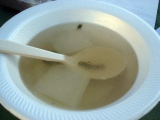 You thought you were done hearing about Nor-mai for the month, didn’t ya? They had one other thing I had to have, so I got it to go and took it to work for lunch the next day. Chicken Rice is a dish that originated in China, became famous in Singapore, and this is the Thai version. Essentially a chicken is boiled, then the liquid is reserved and used to cook rice in. Served with condiments, chicken soup and some amazing cucumber slices, this was a very refreshing meal and has me wanting more than ever to try the Singapore version.