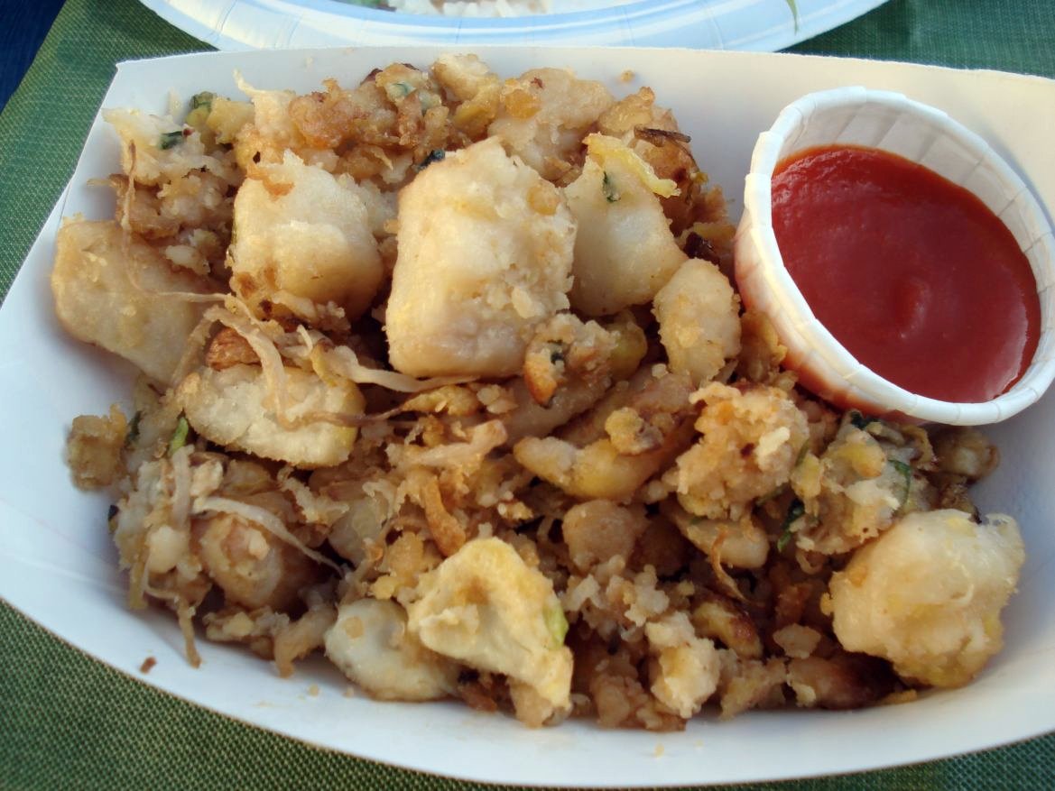Next stop, more Asian food. In this case, steamed barbecue pork buns from vendor called Chubby Buns. I’ll wait until you’re done tittering. To be honest, I’m not generally a big fan of this dish because it’s usually made a little sweet for my taste, but these didn’t suffer that problem. Delicate yet substantial, they struck a good balance between sweet and savory. I’d wolfed both down before I knew it. And the side of slaw provided a nice accent and palate refresher for the next course…