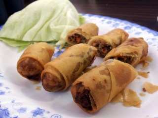 …we went inside and took a seat along the wall. The first thing I noticed was a big black number on the wall next to every table, which I have to say didn’t give me a lot of confidence in the waitstaff. Sure enough, when our server arrived she wasn’t particularly knowledgeable, responding to my inquiry about the lack of anything other than a beef base for the variety of noodle soups by saying that most vegetarians don’t seem to mind (note: this means they are NOT vegetarians). We decided to play it safe and order standard pho. To be honest I don’t recall exactly what Mom ordered, but since there was no option that incorporated steak, brisket and meatballs and I wanted all three, I offered to pay a little extra for a customized order. As an afterthought, I tacked on an order of egg rolls so I could try them in their native environment.