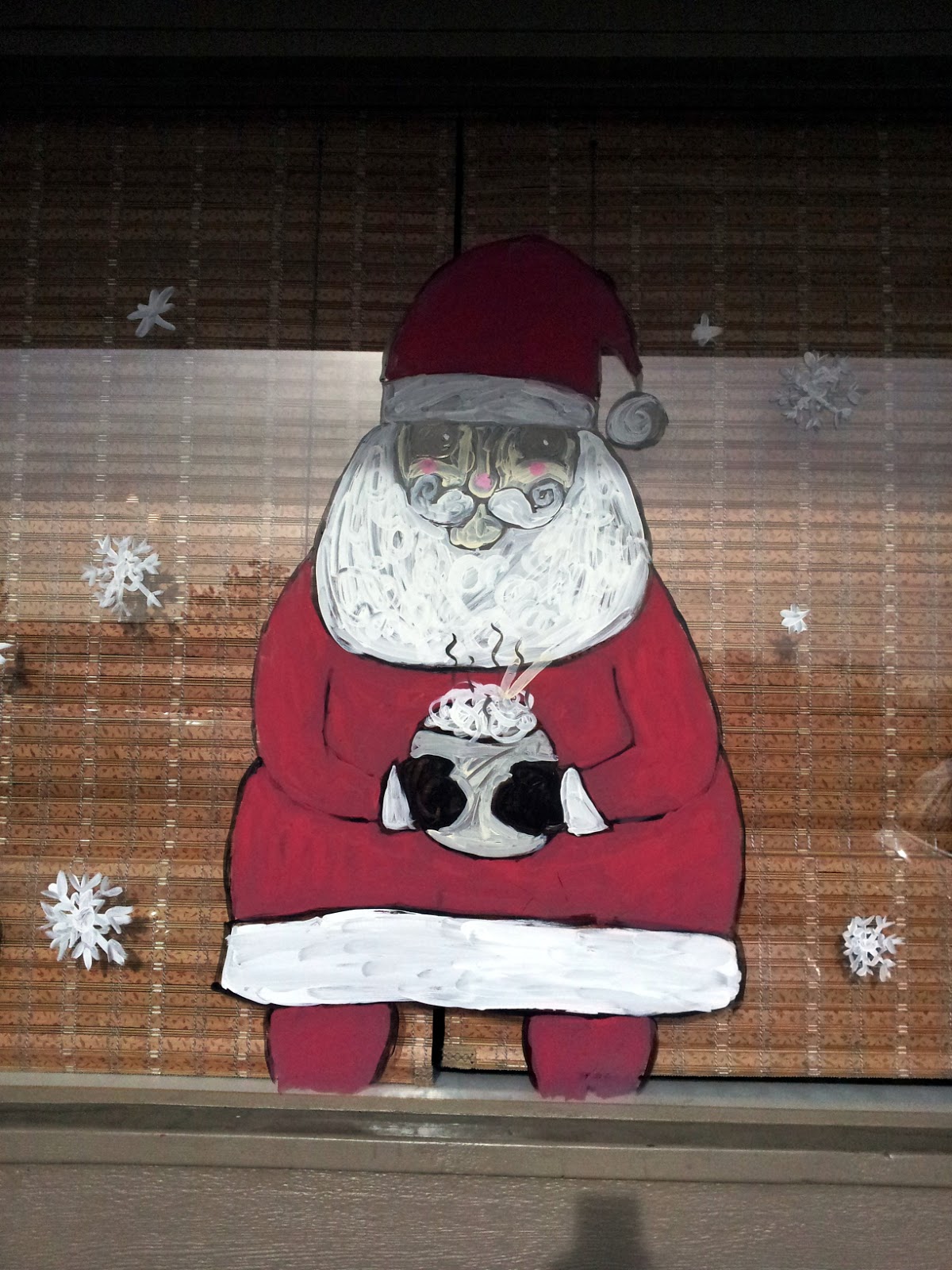 Just before Christmas, I found myself cut loose from work early and decided to treat my mother to lunch. The best thing about treating is of course that I get to choose the restaurant, and I chose Pho Bac. Making our way past the window painting of eerie pseudo-anime Santa…