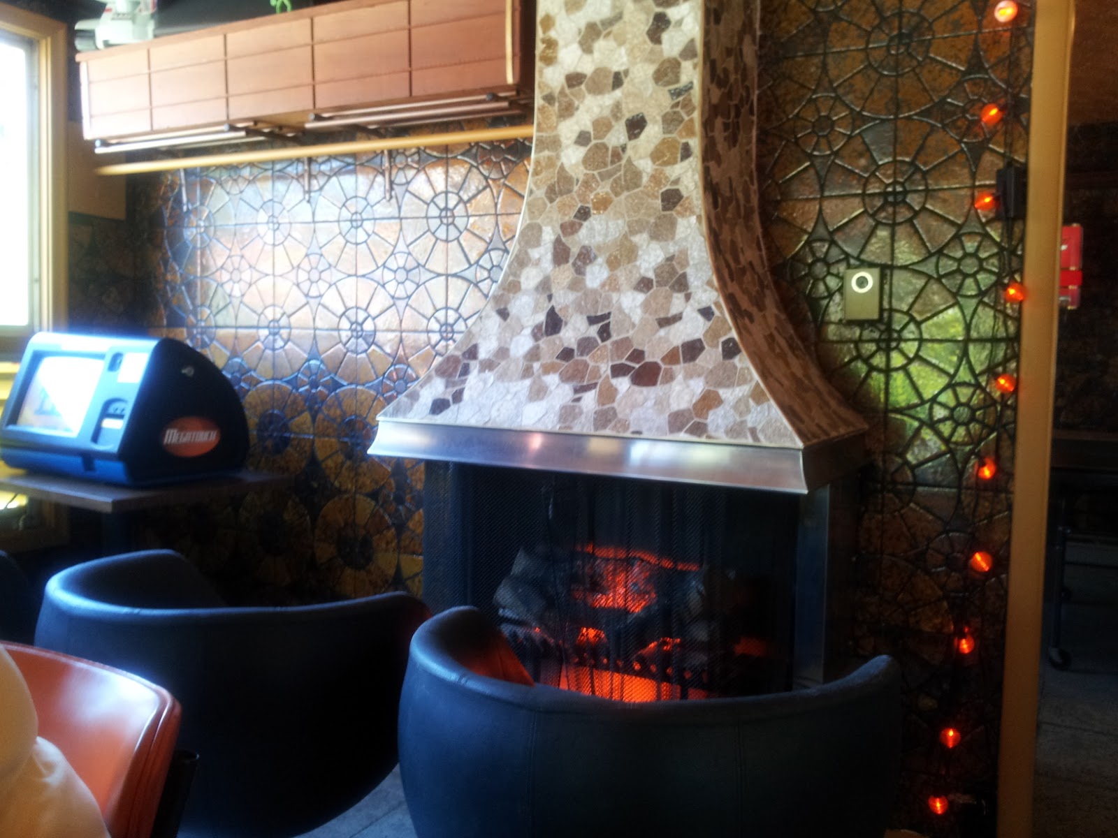 I feel I have to disclose a bias at this point, and that is that I loved Cosmic Pizza the second I walked in the door. The decor is a little on the cheesy side, what with the fake fireplace, plastic spaceships and strings of lights, but as someone who remembers the 80’s fondly it was right in my comfort zone. Everything about the place reminded me of the kind of little theme diners I saw as a kid in the small towns I passed through with my family on trips. But don’t just take my word for it…