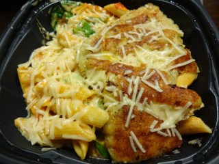 | Pesto Cavatappi with parmesan-crusted chicken |