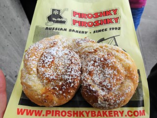 In case you didn’t catch it one of the dozens of other times I’ve brought this up, I kind of idolize Anthony Bourdain. Since he did the combination Portland/Seattle Pacific Northwest episode during season three of No Reservations, I’ve wanted to check out Piroshky Piroshky. These guys have been turning out Russian-style handheld pies in sweet and savory varieties, each with its own unique design for easy differentiation, for over two decades now. And damn are they good at it. After scoping out the selection I chose, of all things, a vegetarian item.