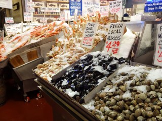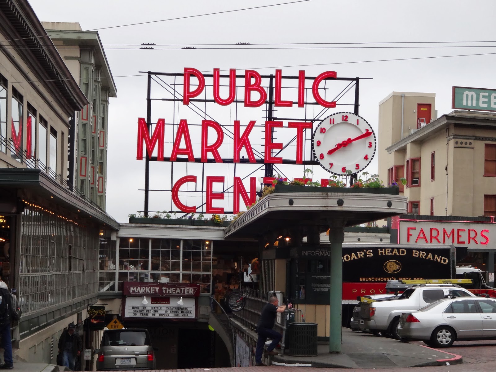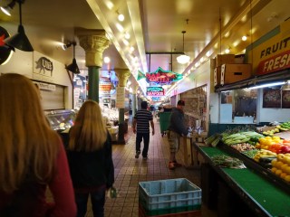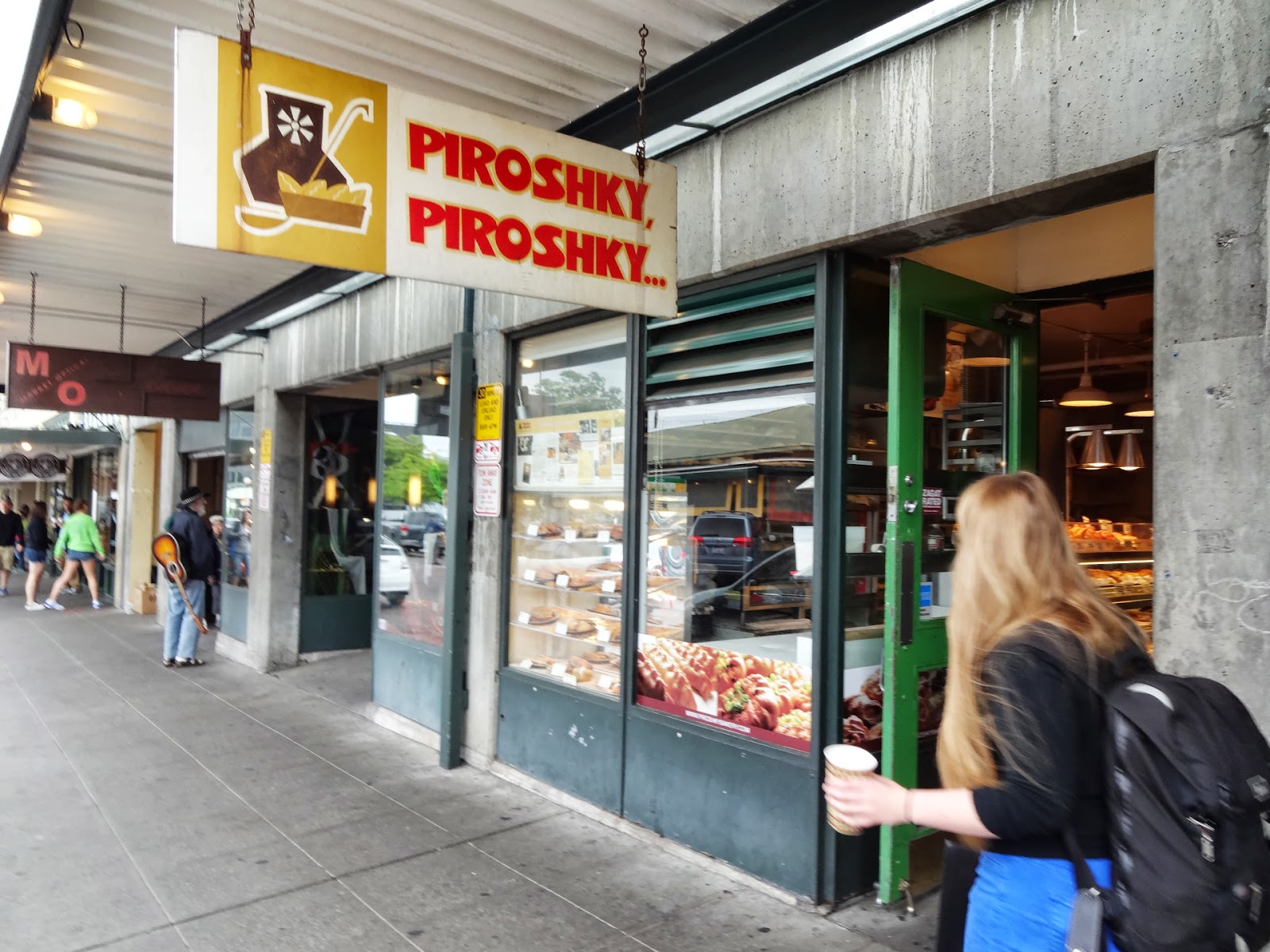 Pike Place Market has staggered hours. We arrived after the breakfast eateries and fresh goods suppliers had set up for the day, but before the other non-food merchants and other restaurants had opened.