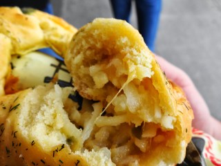 If you can imagine all the deliciousness of a simple potato, cheese and green onion hash brown casserole but stuffed in a chewy, golden brown pastry and and sprinkled with chives, that’s basically the Potato and Cheese piroshky. I shared bites of it around and everyone was pretty impressed. As for me, I may never eat a Hot Pocket again.
