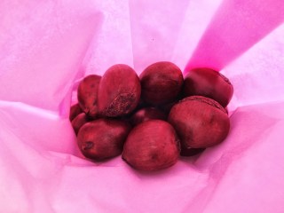 I guess it’s only appropriate that we ended with something bittersweet. For YEARS now, I’ve been wanting to try a roasted chestnut. Blame all those hokey Christmas songs. There is a stand that sells them in front of Uwajimaya, so I bought a bag.