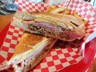 Is there anything more associated with Cuban cuisine (outside of Cuba) than their namesake sandwich? I don’t even remember where I first heard of these things. I thought it might have been Scarface, but other than the fact that Tony and Manny worked at a roadside shack making them for about 30 seconds at the beginning of the film, the Cuban sandwich is never seen or mentioned. Regardless, if you’re a pork enthusiast like me, this is a no-brainer. It takes the classic combination of ham and Swiss cheese, adds roasted pork, mustard and pickles, tosses it all on a a big hunk of bread and smashes it in a hot press until that bread is wonderfully thin and crispy all over. Mom was won over by it, that’s for sure. And if you think you’ve had a Cuban sandwich at some local bar and grill or The Cheesecake Factory, think again.