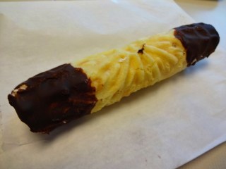 Occasionally, however, I come across a dessert that makes me reconsider my position on desserts. The Cream-Filled Cookies are just such a treat. I expected it to be crispy, but the bread component has more of a soft, waffle-like texture, rolled and filled with a nutty flavored whipped cream before both ends are dipped in chocolate. These things are cheap and well worth it.