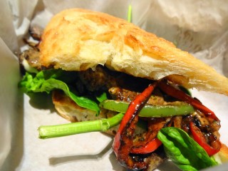Sicilian Blue Cheese Philly Sandwich – and finally we come to my dinner. Beef tenderloin, onion, and red and green bell peppers sauteed in bleu cheese butter are added to more bleu cheese, arugula and melted provolone, then stuffed into baguette bread with basil mayo. Usually there are mushrooms, but I don’t like mushrooms. Intensely flavorful and VERY messy. Grab extra napkins, trust me. This can’t top their pork smashburgers for me, but it was nice to try a completely new menu item, and a successful one at that.