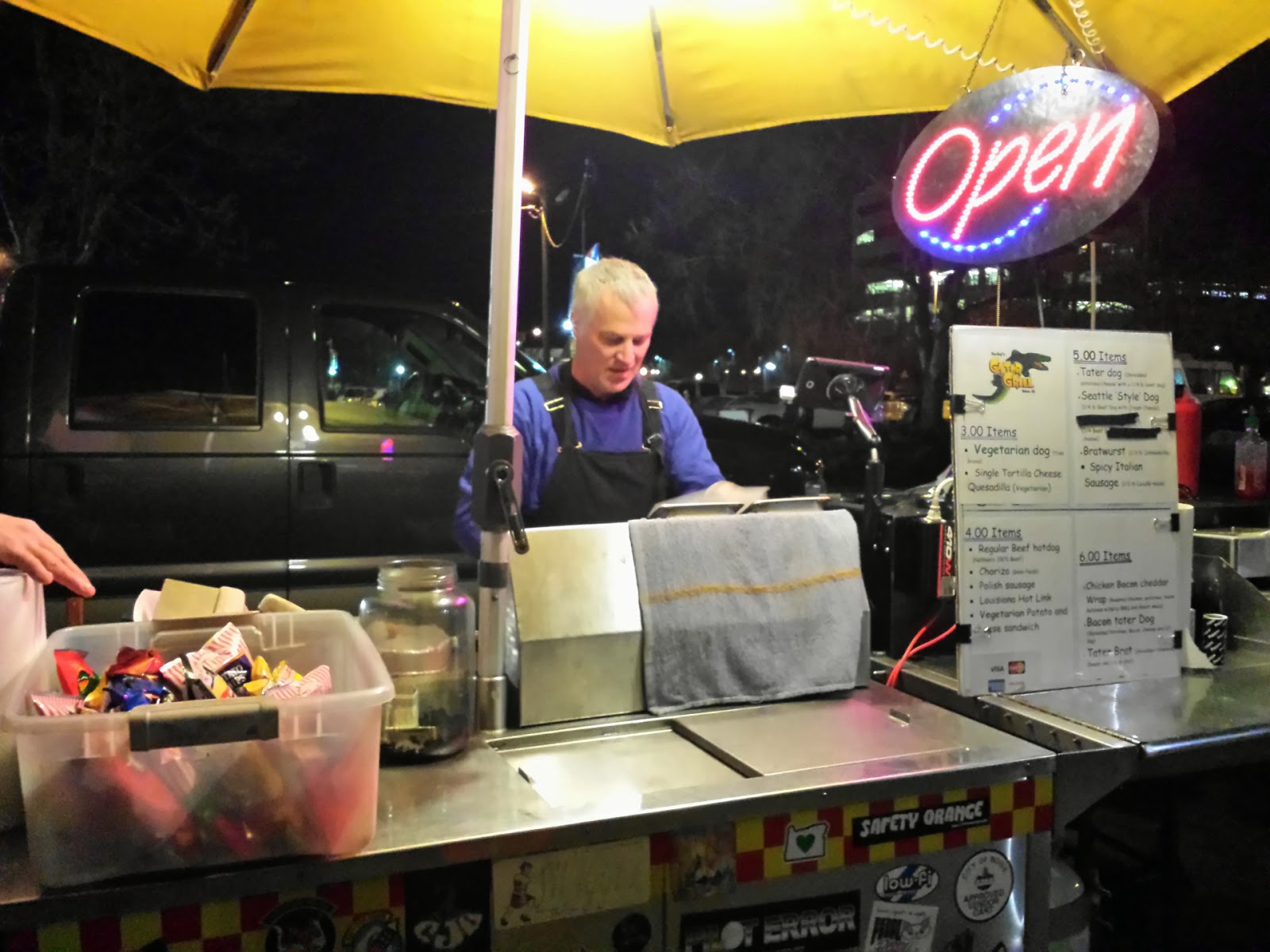 The eatery in question is a hot dog cart called Gator Grill 2. Yes, there is a Gator Grill 1, but they’re operated pretty independently of each other. Gator Grill 2 is the one with the social media presence, the one that’s actually listed on Urbanspoon and Yelp. David is aware of the importance of utilizing these tools in this day and age. Last year he even offered a free meal to anyone who would post a review on Urbanspoon, even if it was a negative one. In his communications with me, he has good-naturedly mentioned several times that he is aware I could just as easily do a negative review, but despite that he has always encouraged me to show up when he’s busy and under pressure. The guy is a professional, and he craves all feedback no matter how positive or negative it may be.