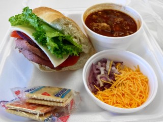 The Italian Sub is pastrami, capacolla, and dry salami with Swiss and provolone, and I chose French bread this time. Even though I’d managed to avoid the avocado this time, it was still a pretty basic sandwich. The ingredients were good quality, but the overall result just isn’t the kind of thing you look forward to all morning. The chili was a marked improvement over the soups but still could have used a little more salt, or better yet some heat.