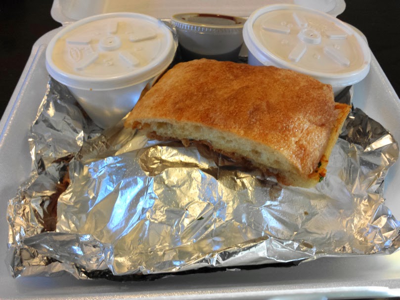 One thing I have to give Bodacious Pig points for is the fact that, rather than a roll or a slice of white bread, you get two pieces of garlic bread with your order. It can get a little floppy in transit due to the steam inside the container, but nothing’s perfect. Unfortunately, it was the best part of the meal.