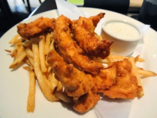 I actually tried a bite of one of these chicken strips, and I have to say I was pretty impressed. Enough so that I was sad that they’re not available as an adult entrée. Side note: why the hell are chicken strips never available as an adult entrée? Fish and chips often are, but chicken strips are almost always relegated to the appetizer menu. Anyway, the girls liked them too.