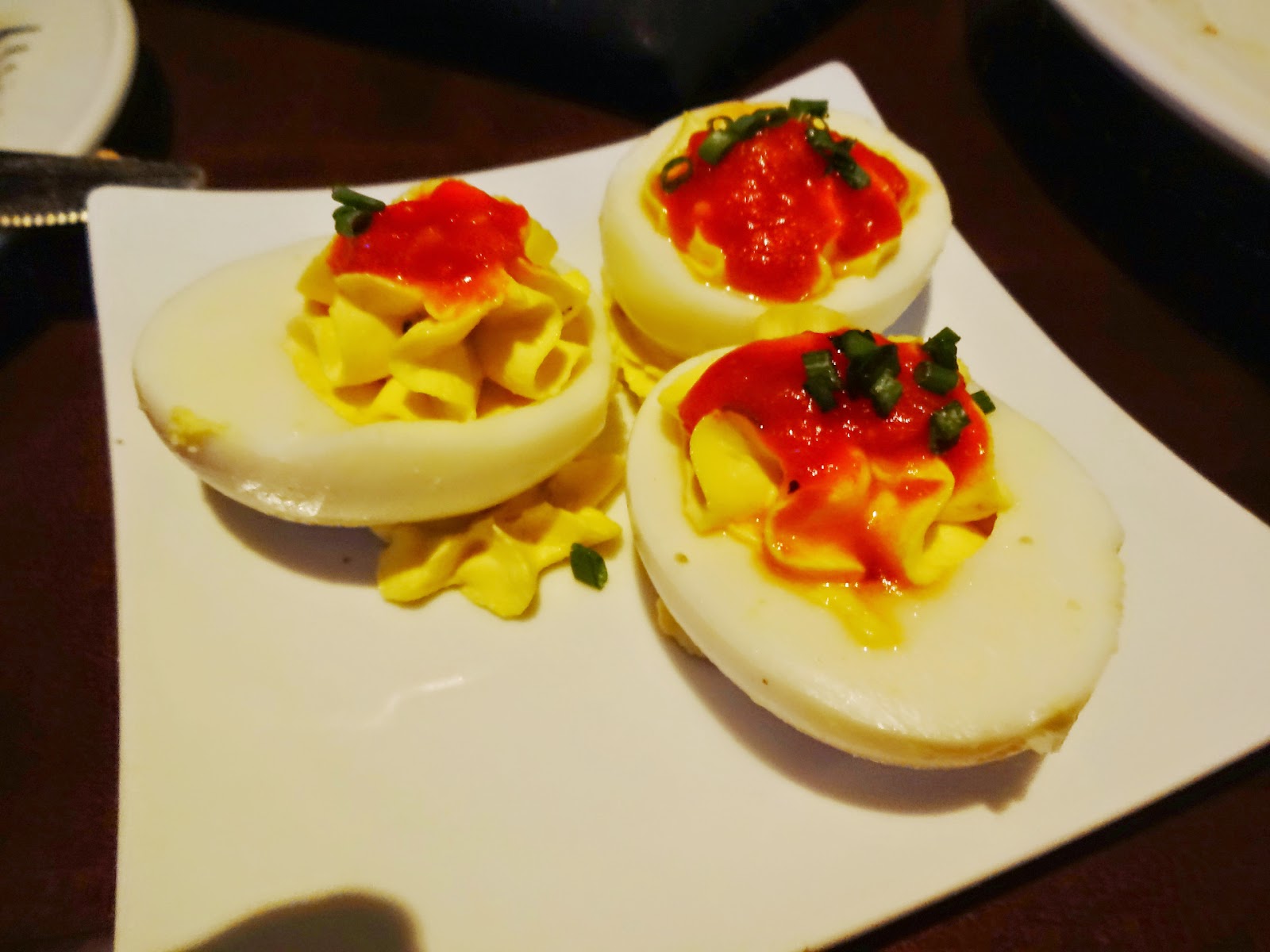The Deviled Eggs are not on the happy hour menu, but I couldn’t pass them up (and they’re pretty cheap anyway). Fairly standard except for the inclusion of spicy tomato and sweet chili sauces, and finished off with a sprinkling of chives. These were a pretty big hit with our group as well.
