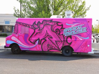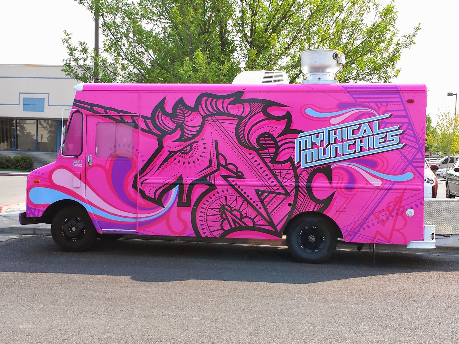 For example, a hot pink truck with a painting of a rainbow-vomiting unicorn tells you…well, about the same thing that the word “Munchies” in the name of the business does. Still, I suppose I might be judging too quickly. Maybe the menu will offer come clarity? Hmm, lots of easily-portable comfort food and deep-fried desserts. Eh, I guess that’s still not necessarily conclusive. It’s not like they have Fritos with a side of cream cheese for dipping (which is awesome, by the way) or anything obvious like that. But I digress.