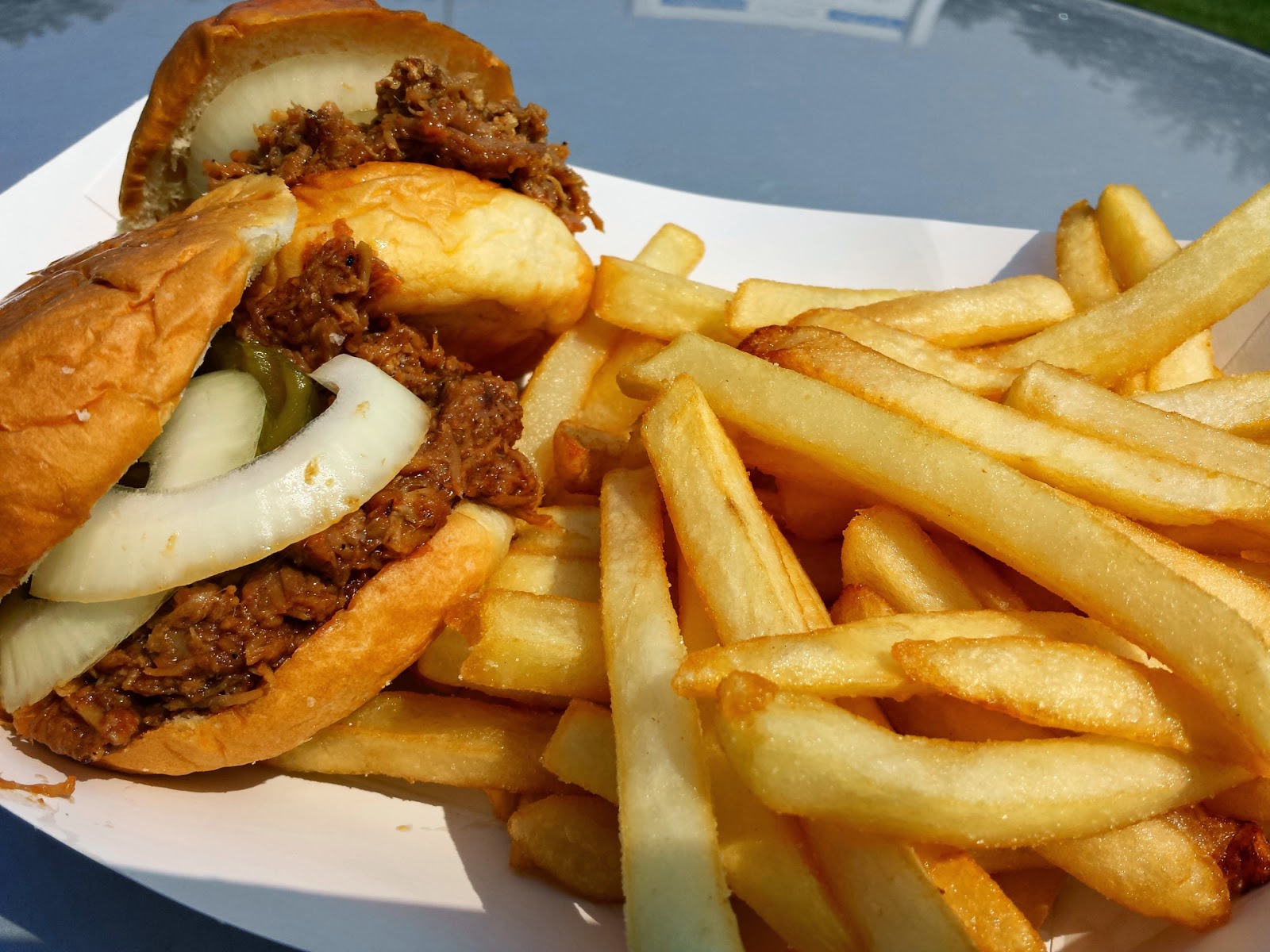 Right out of the gate, the sliders didn’t grab me. The buns were a little dry for my taste. The pork was shredded to smithereens and came heavily pre-sauced, which is a big no-no for me. I get that it probably makes it a lot easier to work with on a truck, but that spells fast food BBQ to me, not barbecue. I’m sure plenty of people would be fine with it, but it’s just not my cup of tea, especially at three bucks a slider. At least the fries were decent.