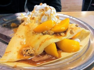 I have yet to visit The Creperie since it morphed into The Creperie Café.  I don’t know if there has been a change in ownership, but I do know they sell coffee now so I definitely need to make it back.  I didn’t eat this crepe though, that was the roommate.  Pretty though, ain’t it?