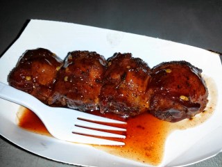 Another one from a relatively recent Food Truck Rally, and in keeping with the balls theme for the moment, those little delights you see above are bacon-wrapped meatballs in surprisingly spicy sauce.  If you like your food with beer, this dish was pretty much created for such a pairing.  Courtesy of Rolling Hawg Smokers, another truck I hope to see more of as the weather continues to improve and the West End Food Park inches ever closer toward becoming a reality.