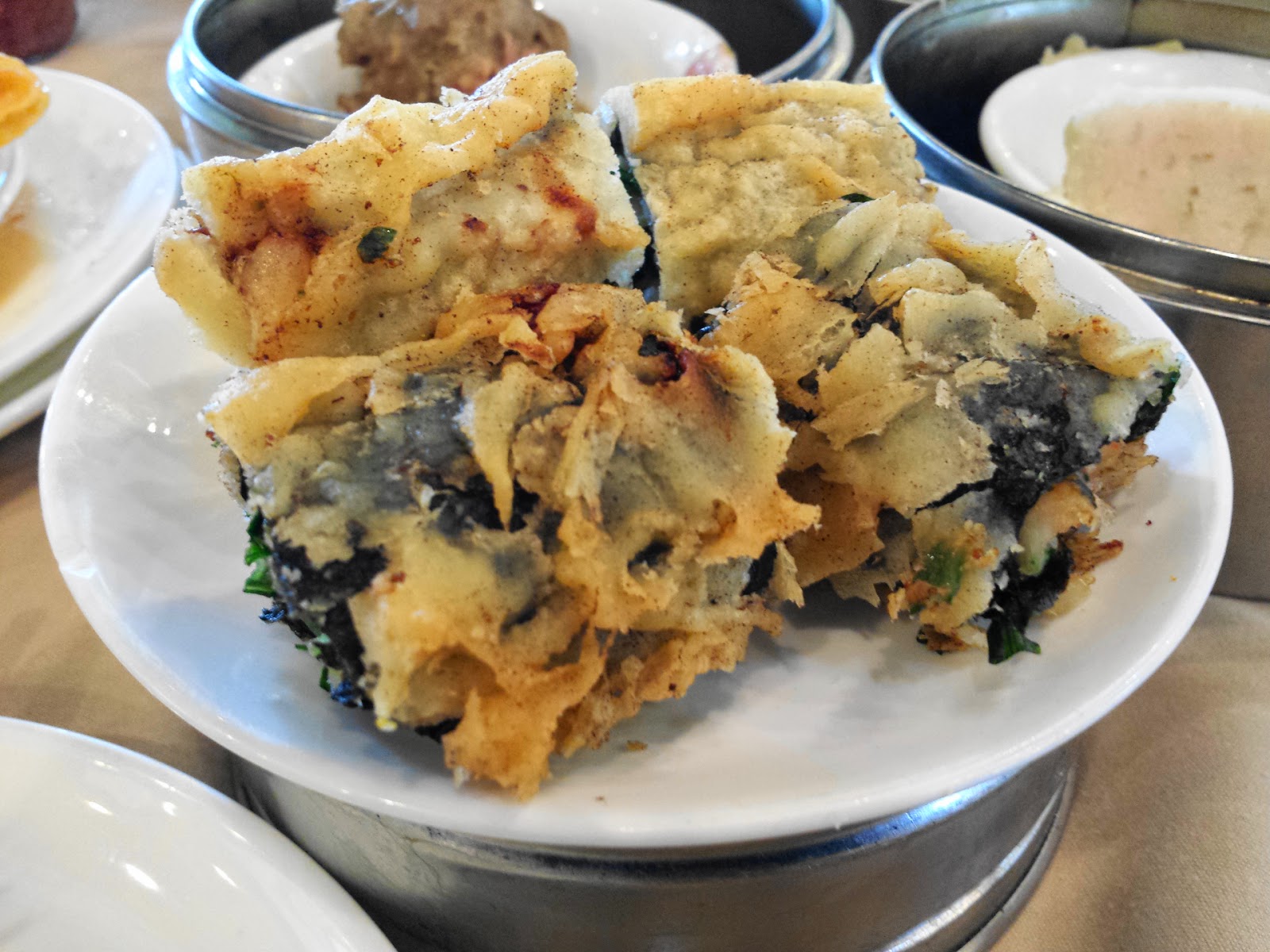 Fried fish and seaweed roll. The waitress referred to it as “Chinese sushi”. Wong’s King has something similar that I enjoy quite a bit. I did not enjoy this. It was cold, which meant the breading was greasy, and the seaweed was so thick in places that you could barely chew through it.
