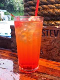 Granted, the view sucked and it was getting increasingly windy out, but that wind carried the scent of the ocean with it. As much as I wanted a drink, I was intrigued by something on their non-alcoholic mixed drink menu called a Cherry Bomb, basically a Shirley Temple with Mountain Dew in place of 7-Up.