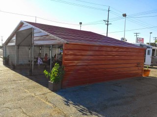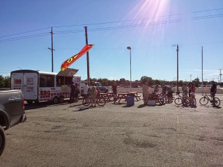 So the West End Food Park has barely gotten started, and they’re already in trouble by some accounts. I had hoped the worst had passed once the Kickstarter was funded (after all, some people tend to be more likely to support something once someone else has done all the work), but between the busy Summer season for the trucks and the variety of excuses from potential patrons as to why they can’t or won’t show up, it seems like WEFP is having trouble shifting up to the next gear. The first time I want down there, there was literally one truck in a cracked asphalt lot. Now there are portable toilets, a hand sanitizing station, covered seating, and painted parking spots for both trucks and patrons. I’ve only made it down three times myself so far, but each time has offered different eats and general improvements. How about some visuals?