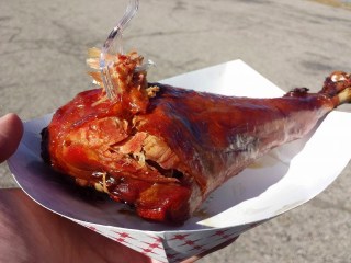 Turkey Leg, tender enough that it can be eaten with a plastic fork.