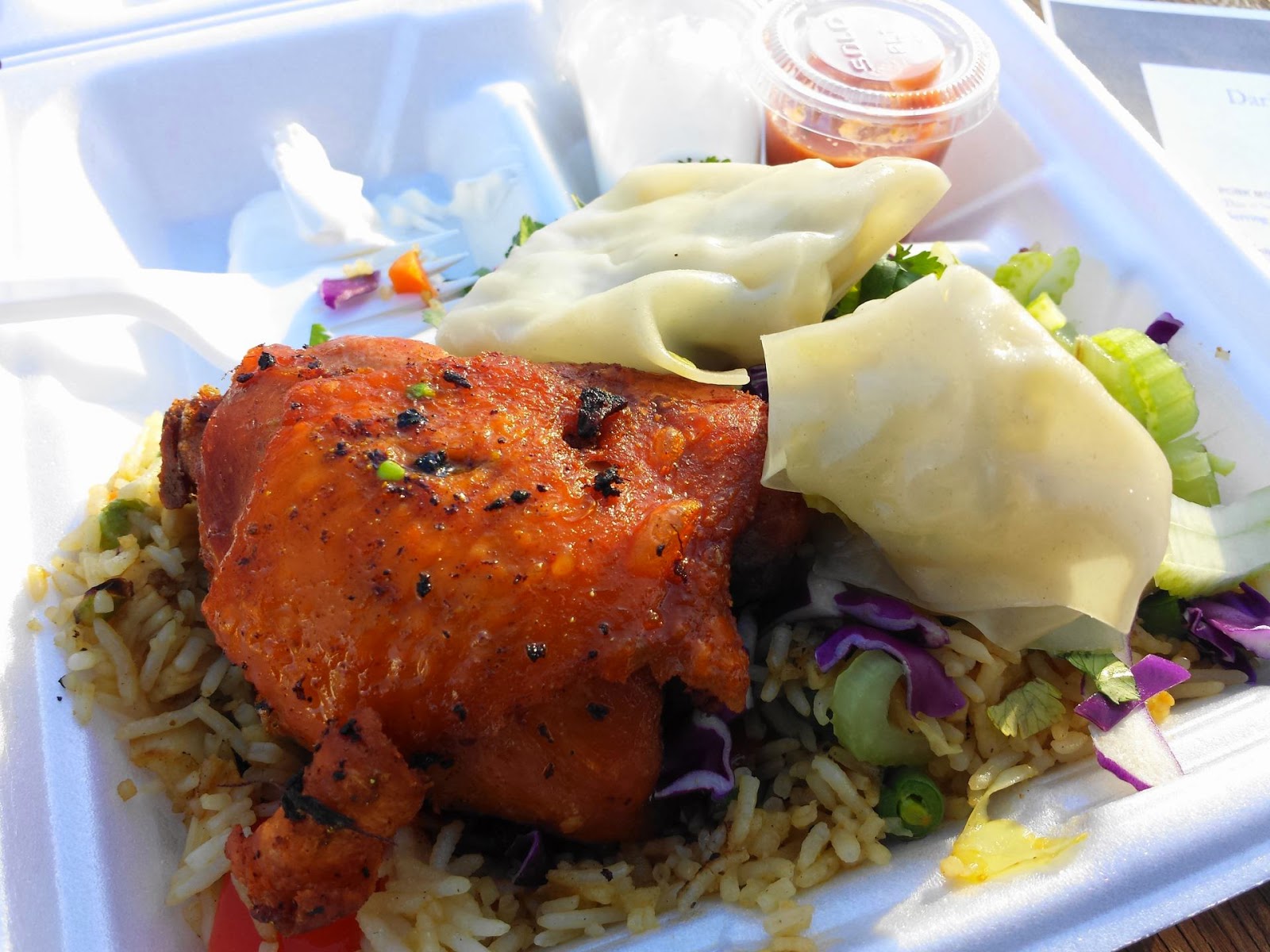 As for me, I got to visit Darjeeling Momo their first night out. The brains behind this truck actually used to work at the now defunct Momo Food of the Himalayas in Meridian, which was one of my all-time favorite restaurants. They have some fine-tuning to do, but I’d say things are promising. I likely wouldn’t order the chicken curry again, it’s just too much of a pain in the ass to eat marinated chicken on the bone with plastic utensils and no place nearby to wash your hands, but whatever that chicken veggie rice salad stuff is underneath it, I could eat that all day long. The momos are good, but just at the moment they only have the pork variety, and their chutney is more tomato-based that Momo’s proprietary sauce. Still good, just different.