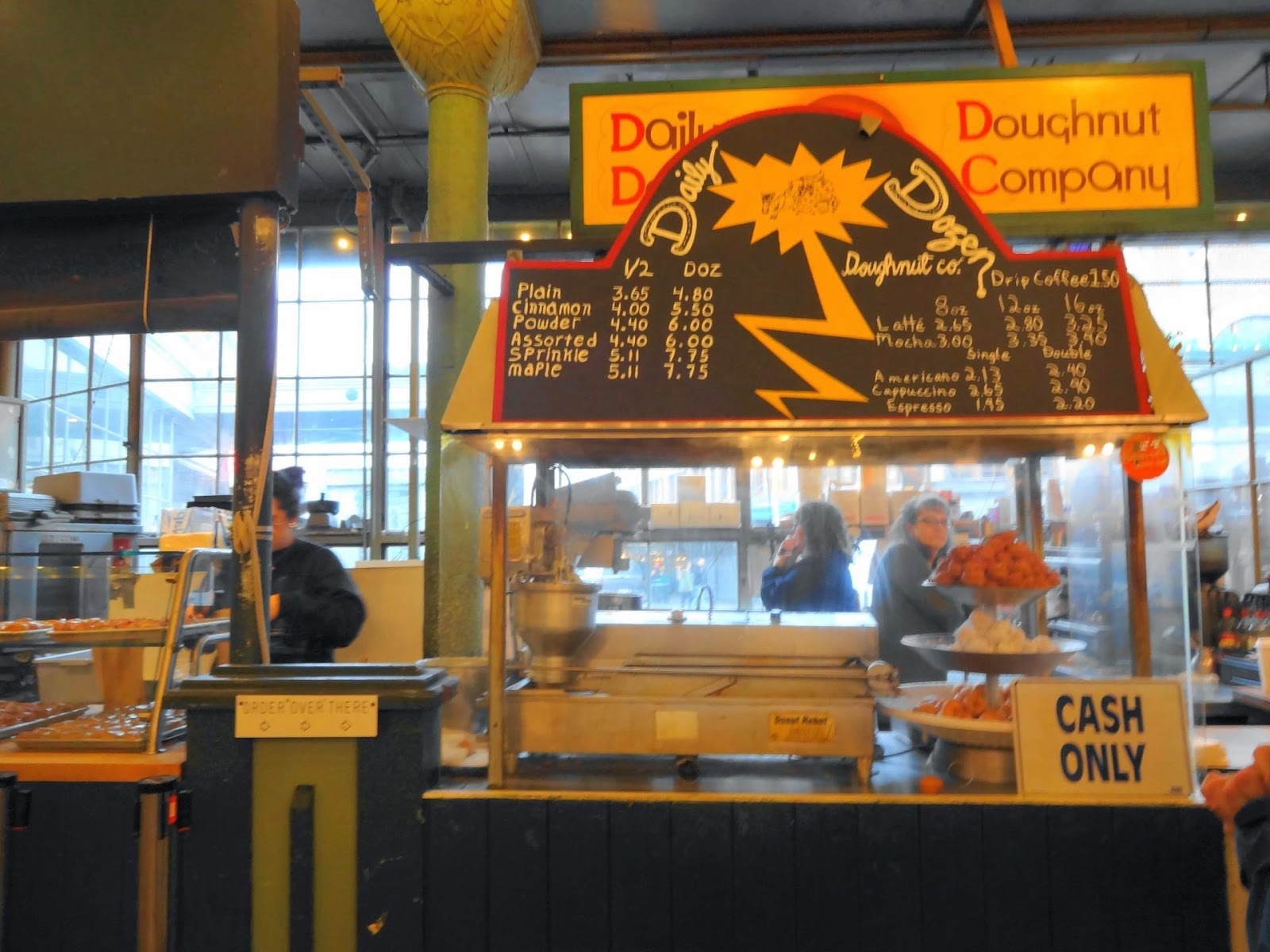 She knows me too well. So, we caught the early morning flight (for all those who hate flying as much as I do, be advised that Alaska Air does serve hard alcohol on the early flights), grabbed the Light Rail downtown, dumped our bags in the storage closet at the hotel (I picked this time, and did an awesome job if I do say so myself), and hoofed it to the Market. After what I did to myself last time (see here, here, here and here), I decided to do myself a favor: no full meals, at least not at first. There is just too muck at Pike Place for me to commit myself to eating at only any one place when I have so little time to spend there. First, it was back to Piroshky Piroshky.