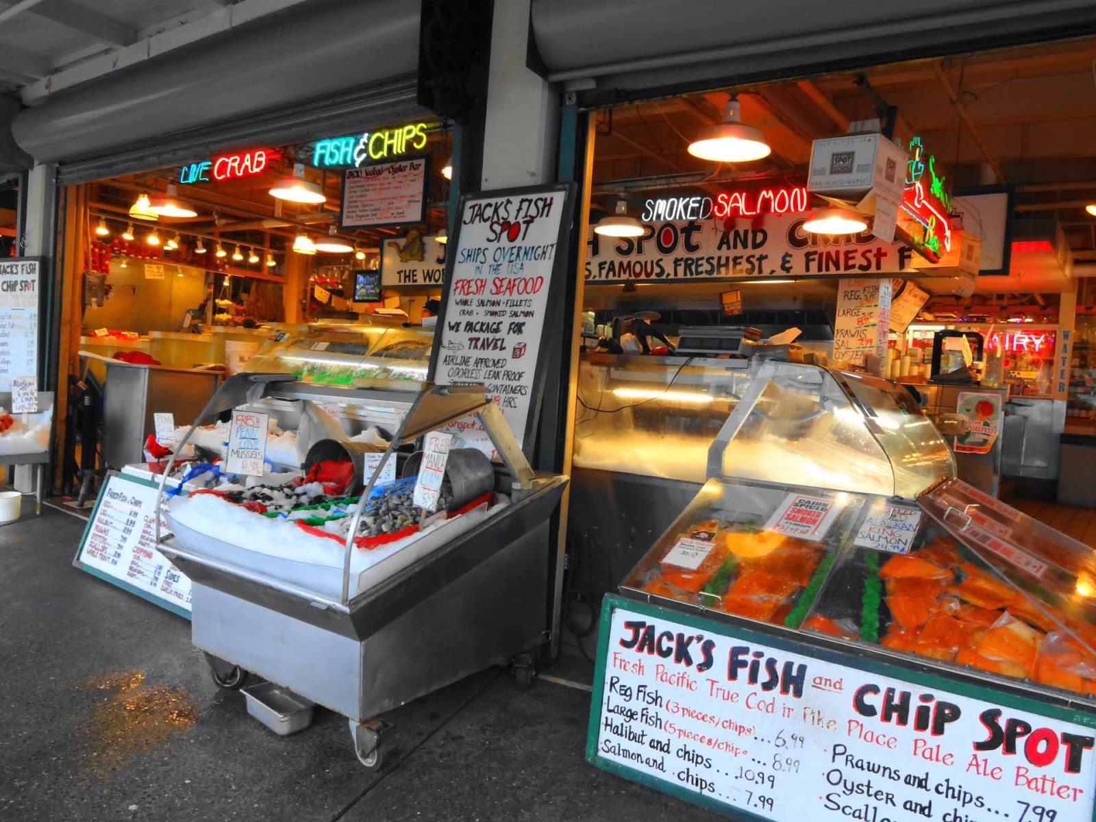 I figured I’d order a cup of Pike Place Roast because what could be more appropriate, right? Apparently that’s a common sentiment, because they blew the carafe halfway through filling my cup. The last thing I wanted after waiting in line was to wait even longer so they could brew a fresh batch, so the guy kept that half cup and mixed it with other brews on hand to create a kind of black coffee version of a suicide. Weird, but it got the job done. Around this time the non-breakfast eateries were beginning to open up, so I decided to indulge my lust for fresh seafood.