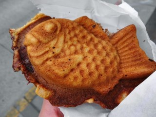 Of course, she liked her treat even more. The pastry part of a taiyaki is decidedly waffle-like, so imagine a thin, hot, fish-shaped waffle stuffed with creamy chocolate filling. Yeah, it’s as good as it sounds.