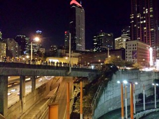 It turns out the line was across the street, on the same side where our hotel was, making it hard to see from our vantage point. By the time we worked this out and took our place in line…well, look at the picture. That light all the way over on the right is above the doors of the venue. All those little things along the sidewalk and bridge are people. Then the line wraps around the corner and down the block, which is where I took the picture from. I was honestly pretty bummed, but the venue turned out to be huge. We ended up at the front of the second balcony section, so while we were pretty far from the stage at least there was a railing and a walkway in front of us, rather than some girl spending the entire show standing or a guy trying to record the whole thing on his phone.