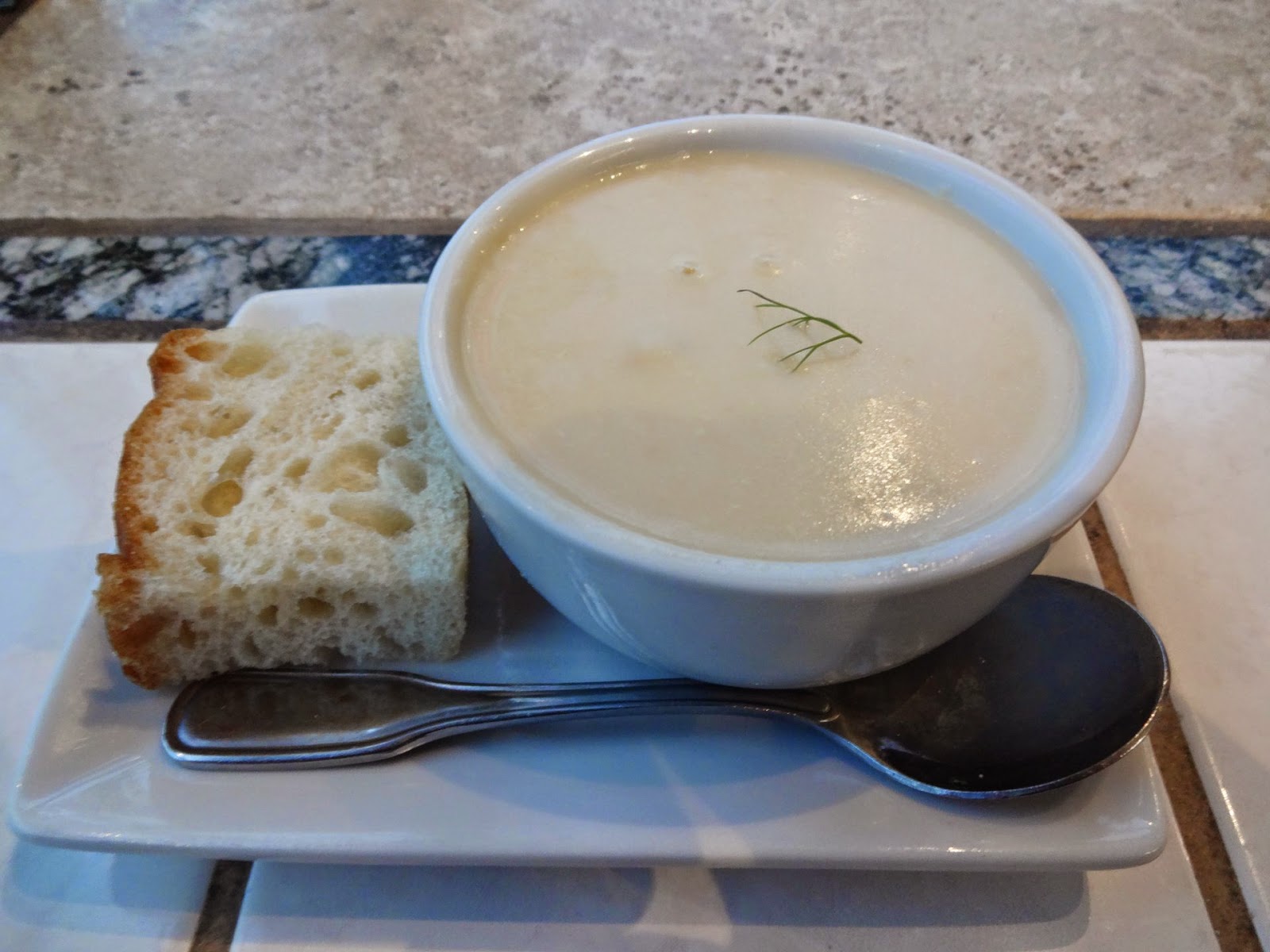 Next came the Roasted Garlic & Dungeness Crap Soup, which my mother had loved so much that she immediately tried to copycat it when she got home. Local Ocean’s version has the advantage of incredibly fresh crab, but other than that I’d have to say Mom’s was better. This just didn’t have a whole lot of flavor. When the name of your dish leads with “roasted garlic”, I expect that to be a real flavor punch, or at least detectable. When all was said and done, it’s a pretty standard chowder (it uses a clam base), but with big chunks of dungeness crab instead of clams. All in all, probably not bad for $7.50 a cup, it could just stand to be jazzed up a bit.
