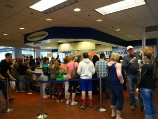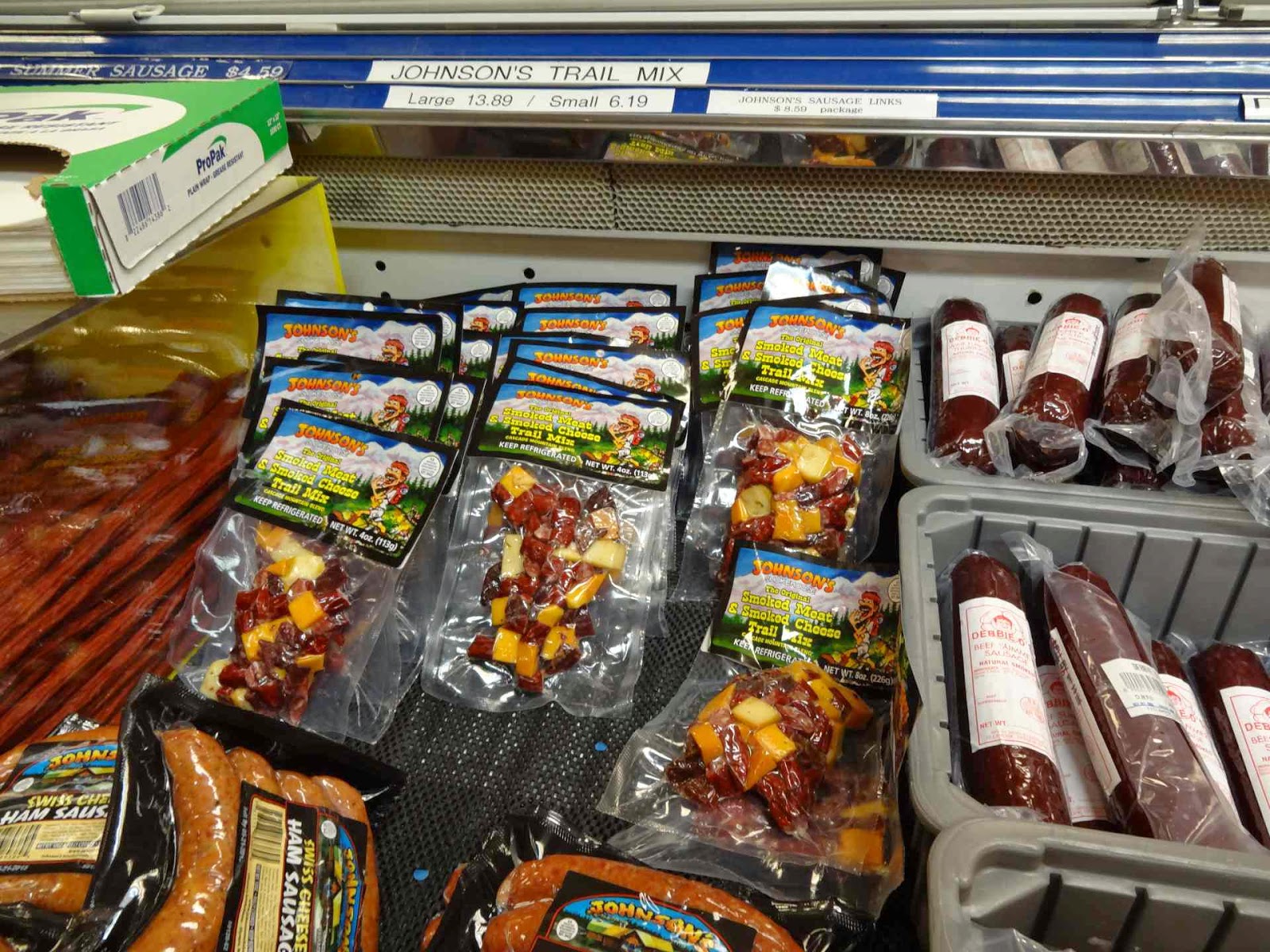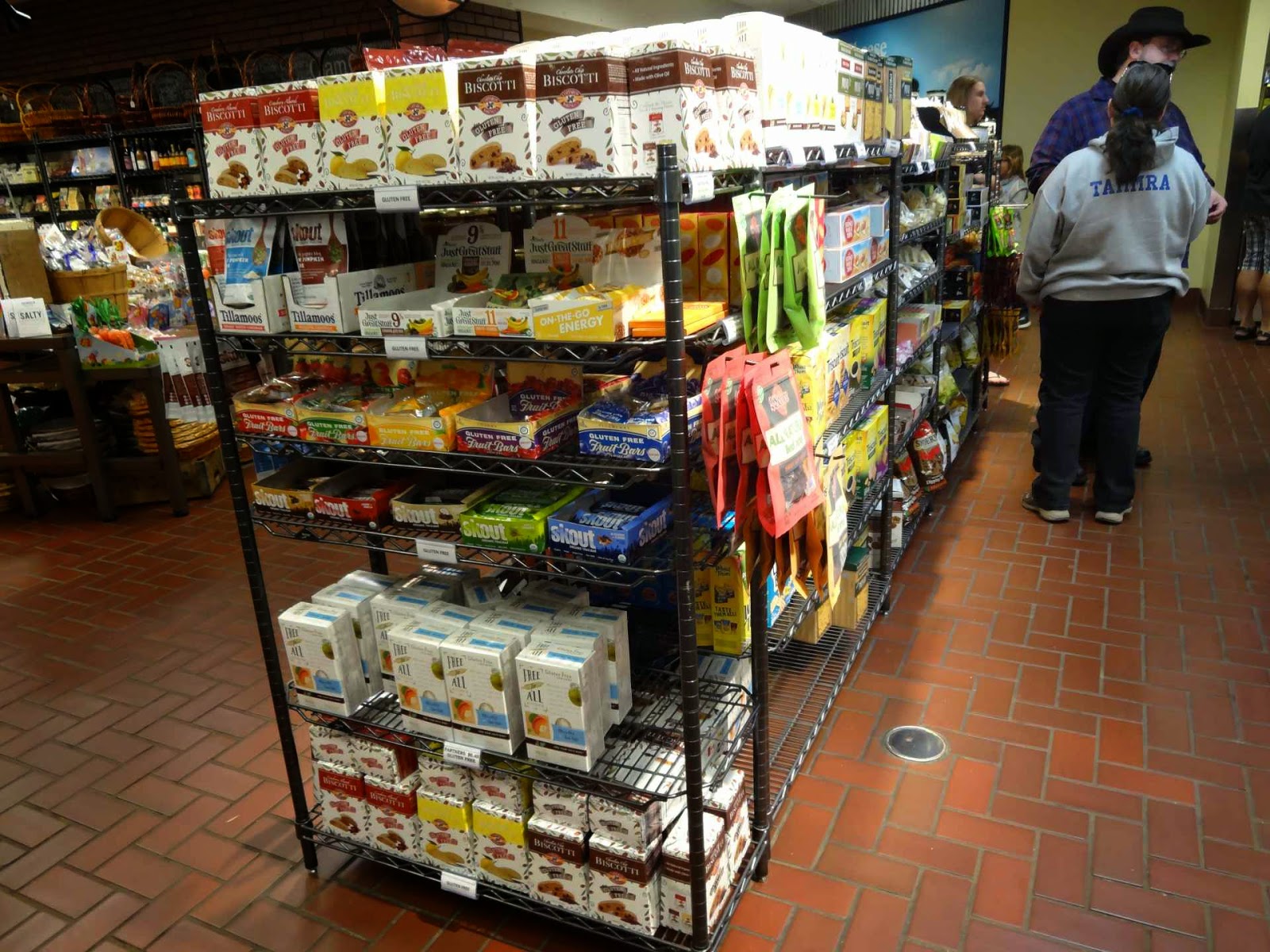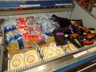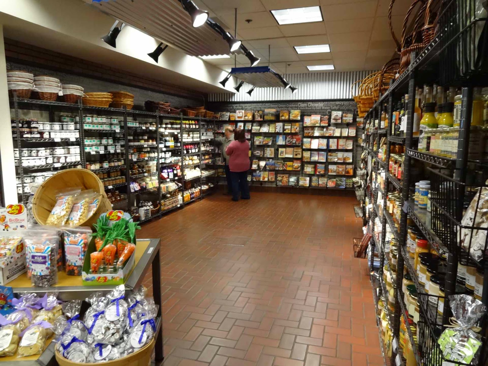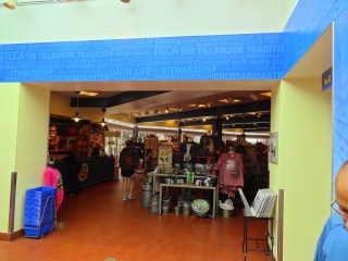 Seriously, there’s a line of six containers with little cubes of cheese, and plenty of toothpicks for sampling them. But not everybody wants to try everything, so you’re constantly being pressured from behind to keep moving. Either you’re going to miss things, or the flavors are all going to start blending together because you’re not able to finish chewing and swallowing one sample before having to move on to the next, or you’re going to wind up standing at the end with your hands full of of hors d’oeuvres and trying to remember which one is which. After that you end up in the gift shop that really matters. Walls lined with refrigerated recesses containing pretty much the entirety of the Tillamook catalog. Cheeses in blocks, slices and shreds. Gift sets with cheeses and cutting boards, crackers and knives. Yogurt, ice cream, sour cream, and butter. There are also some non-Tillamook items on display. Specialty cheeses from other local producers, smoked meats and seafoods, spreads and condiments, cookbooks, crackers, snacks, beverages…here, I’ll just show you.
