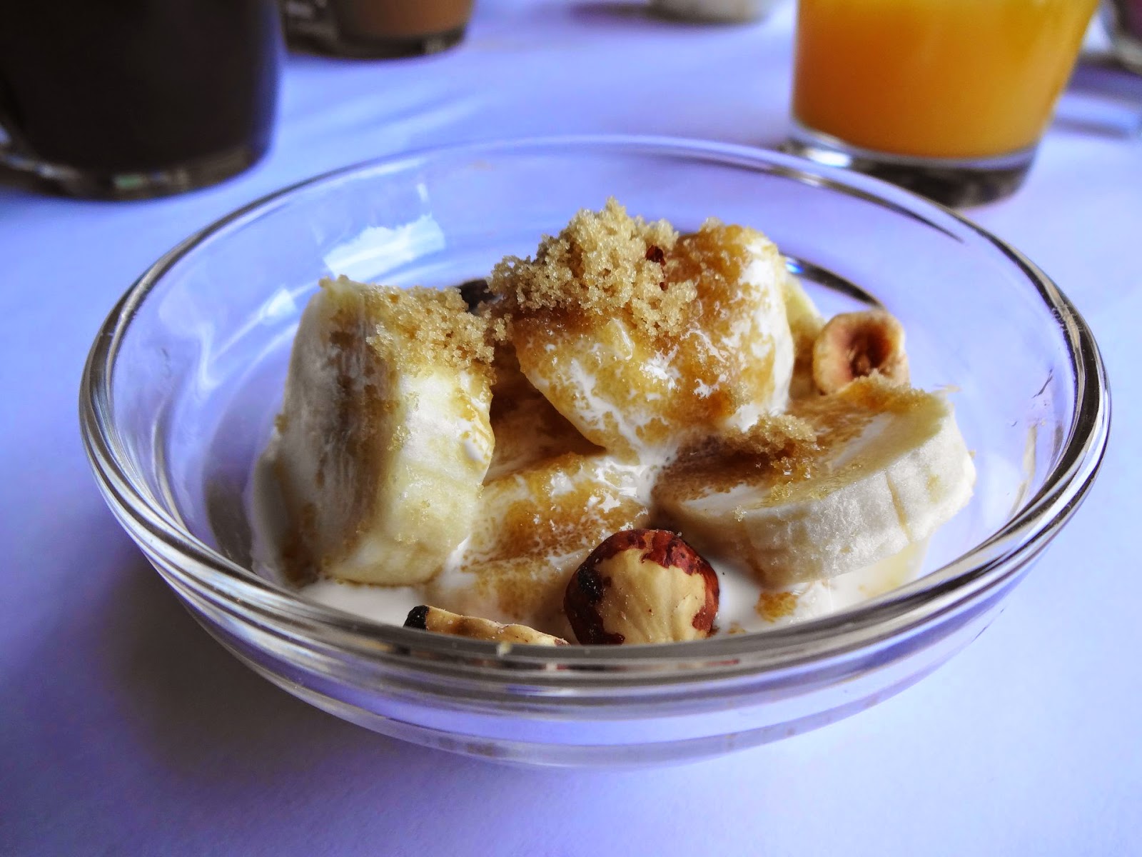 After we had ordered our food, our waitress brought us each a bowl of sliced fresh bananas in cream, topped with toasted hazelnuts and brown sugar. It’s nothing that ever would have occurred to me to put together, but it’s delicious. If you’re just looking for a snack, you can also just order this separately.